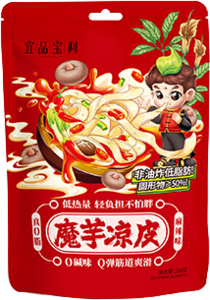 用料:魔芋皮、葱花、辣椒面、孜然粉、盐、白糖、鸡精、芝麻